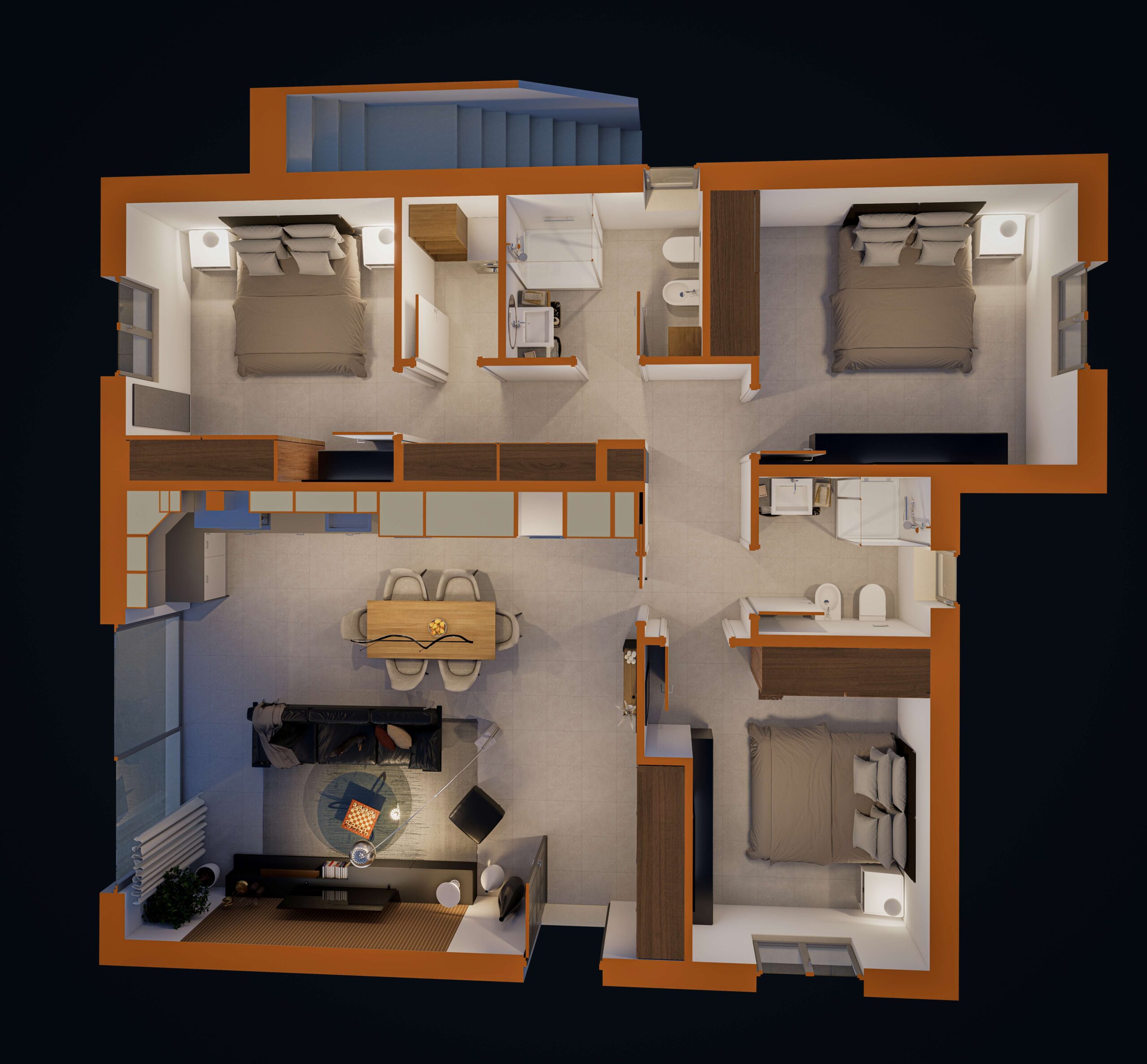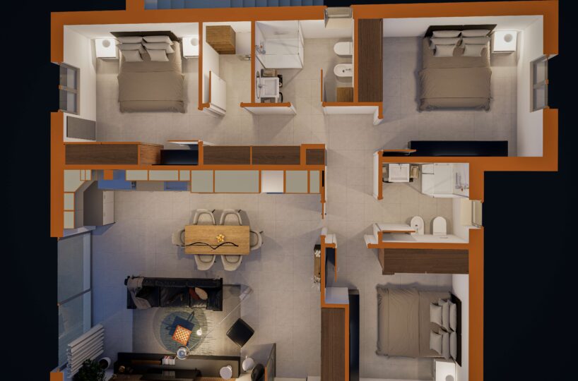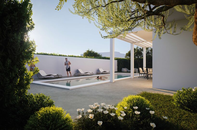 Le abitazioni, dal design contemporaneo ed elegante, si sviluppano su circa 136 mq ciascuna e offrono ambienti luminosi e funzionali, progettati per garantire il massimo della vivibilità. Le ampie vetrate valorizzano la luce naturale e creano una perfetta continuità tra spazi interni ed esterni, rendendo ogni ambiente accogliente e armonioso.